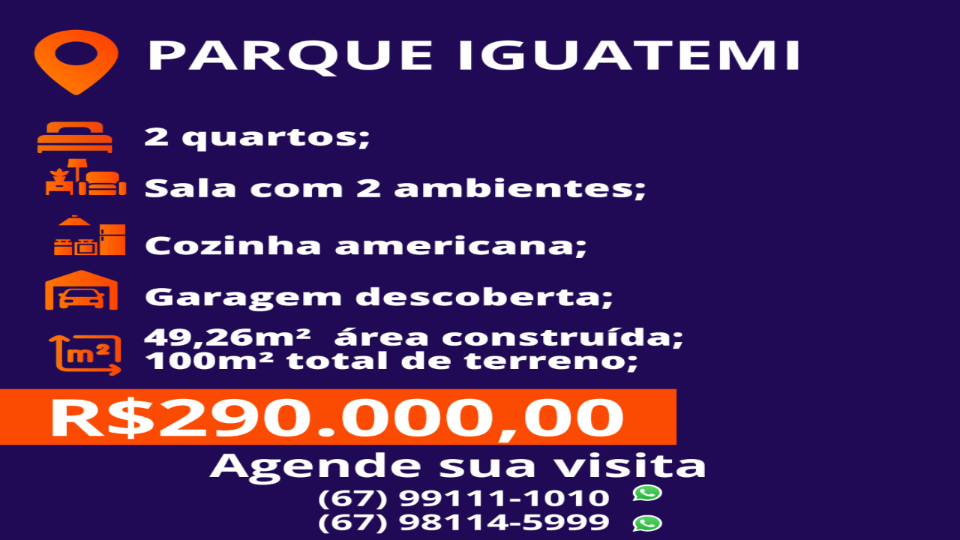 Casa á venda com 2 quartos, espaço gourmet no Parque Iguatemi em Campo Grande - MS